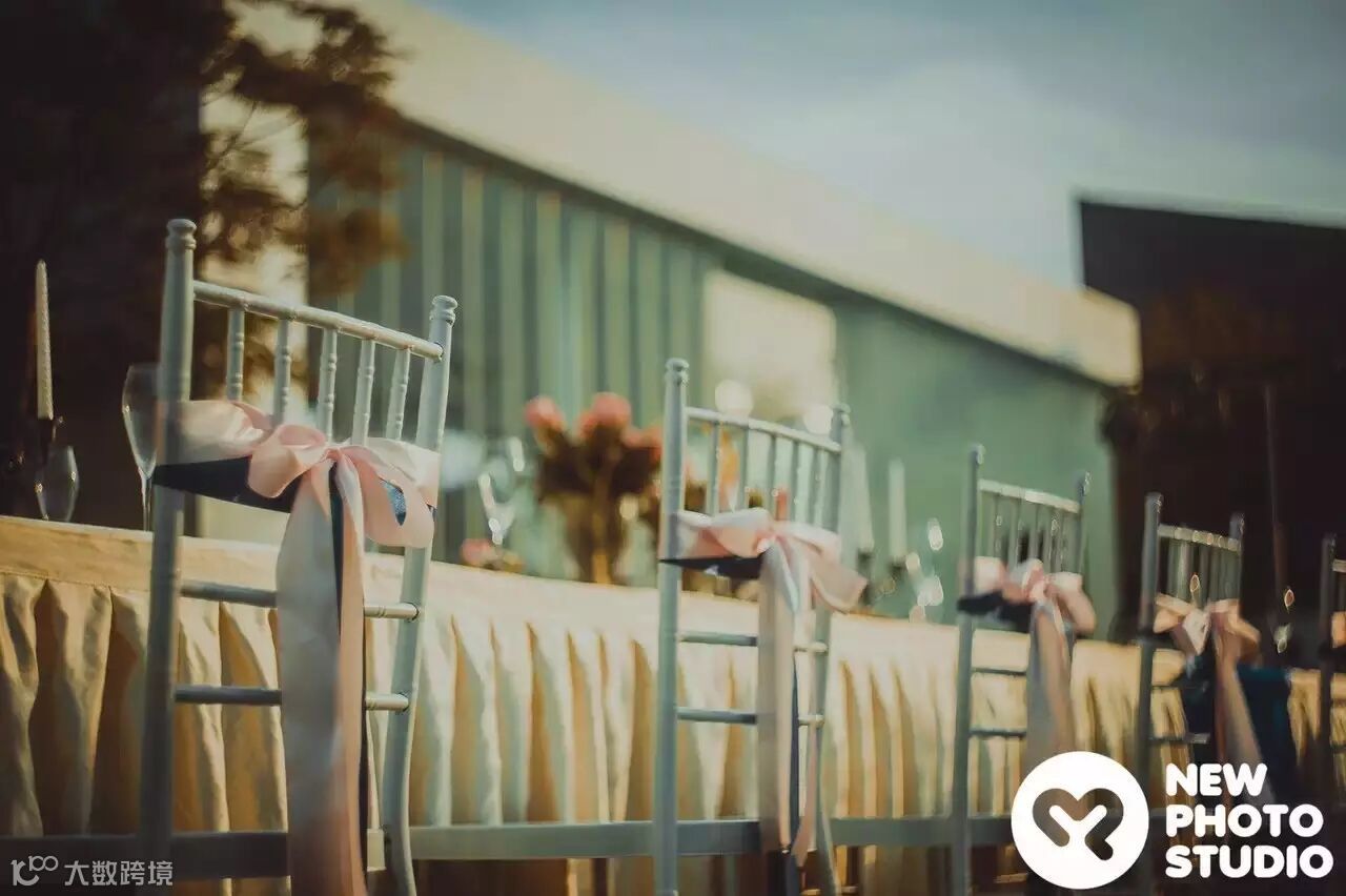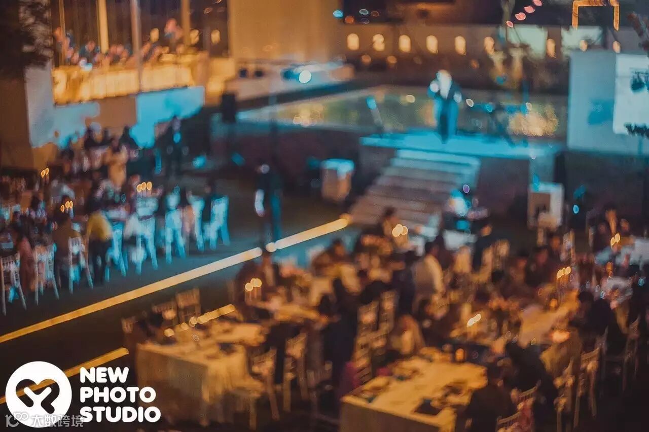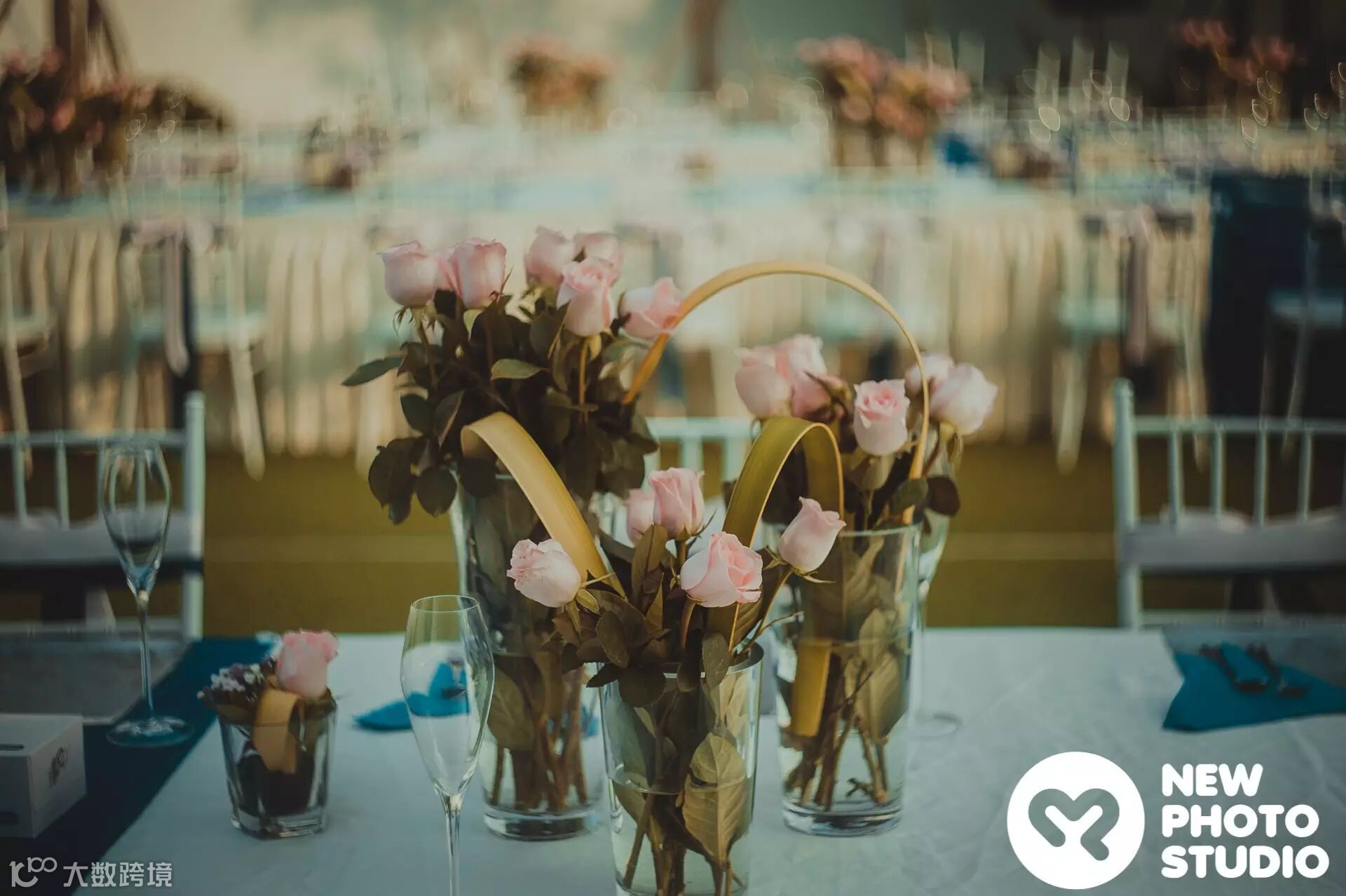 主题元素:在本场婚礼的布置风格中,我们运用了深蓝色和浅粉色为主色调以及炫彩的灯光来烘托出整个会场的效果,大量的深蓝色色调的运用配之浅粉色色彩的点缀,使整个会场看起来灵动跳跃,给人一种奇妙的感觉。