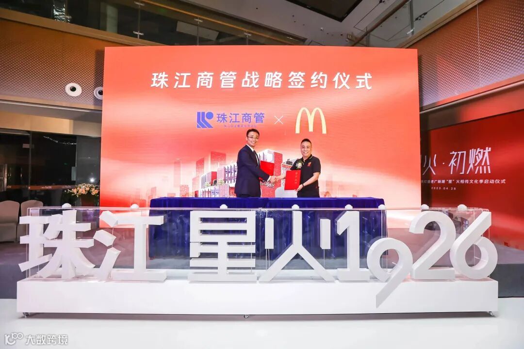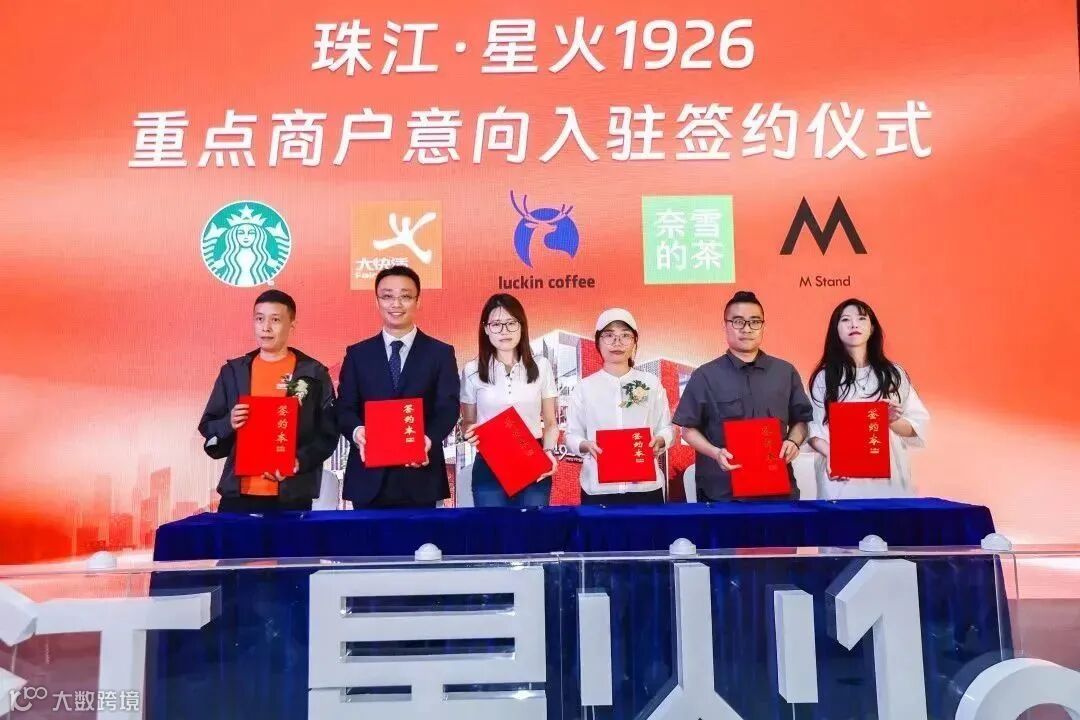 亮灯仪式上,珠江商管郑重宣布珠江·星火1926项目顺利通过竣工联合验收,项目正式进入商户入驻装修和筹备开业的新阶段。珠江商管正式向项目主力店客户永旺交付场地,与麦当劳食品等战略合作品牌签订合作协议,与星巴克、瑞幸咖啡、奈雪的茶、大快活、M Stand等品牌商户签订入驻协议。各品牌商户在亮灯仪式现场都表达了将倾注优质资源,确保项目如期开业的信心与决心。