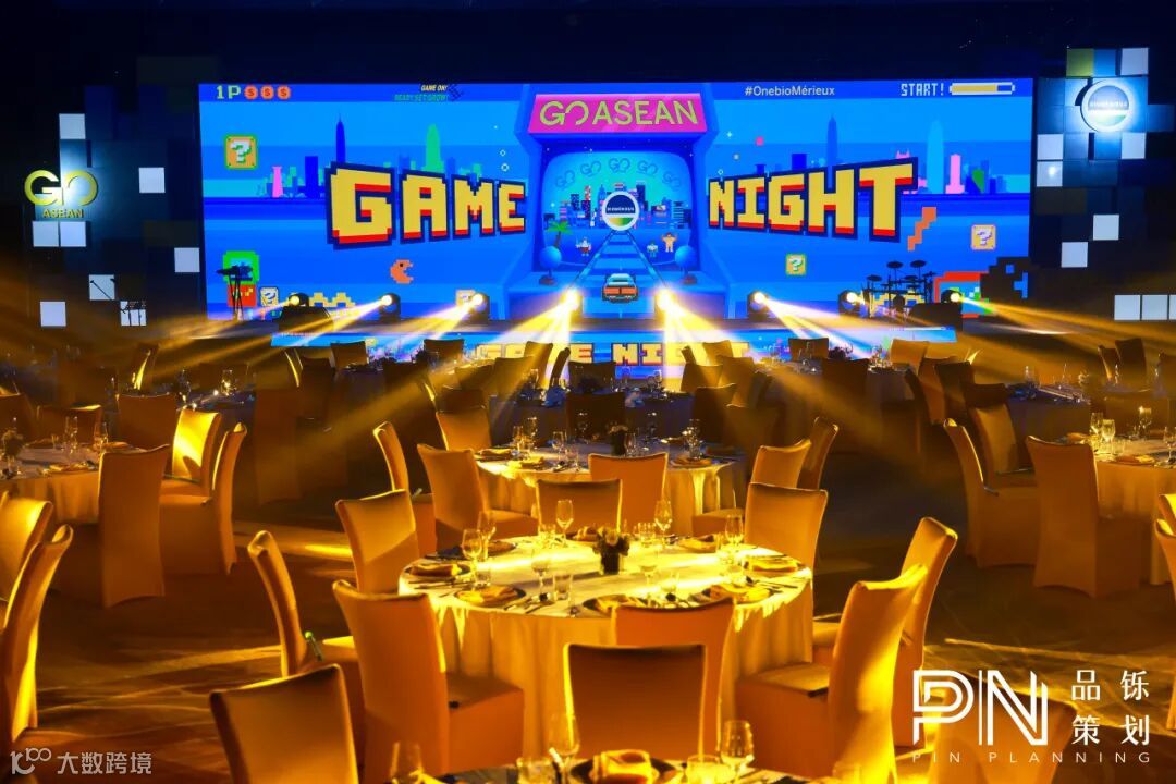 在晚宴环节,我们将以充满活力与活泼的色彩精心打造一个“游戏王国”,让每一位宾客沉浸其中,享受轻松愉快的氛围。舞台设计上,巧妙融合发光方块与像素元素,营造出极具科技感与沉浸感的游戏氛围,为晚宴增添别样魅力。