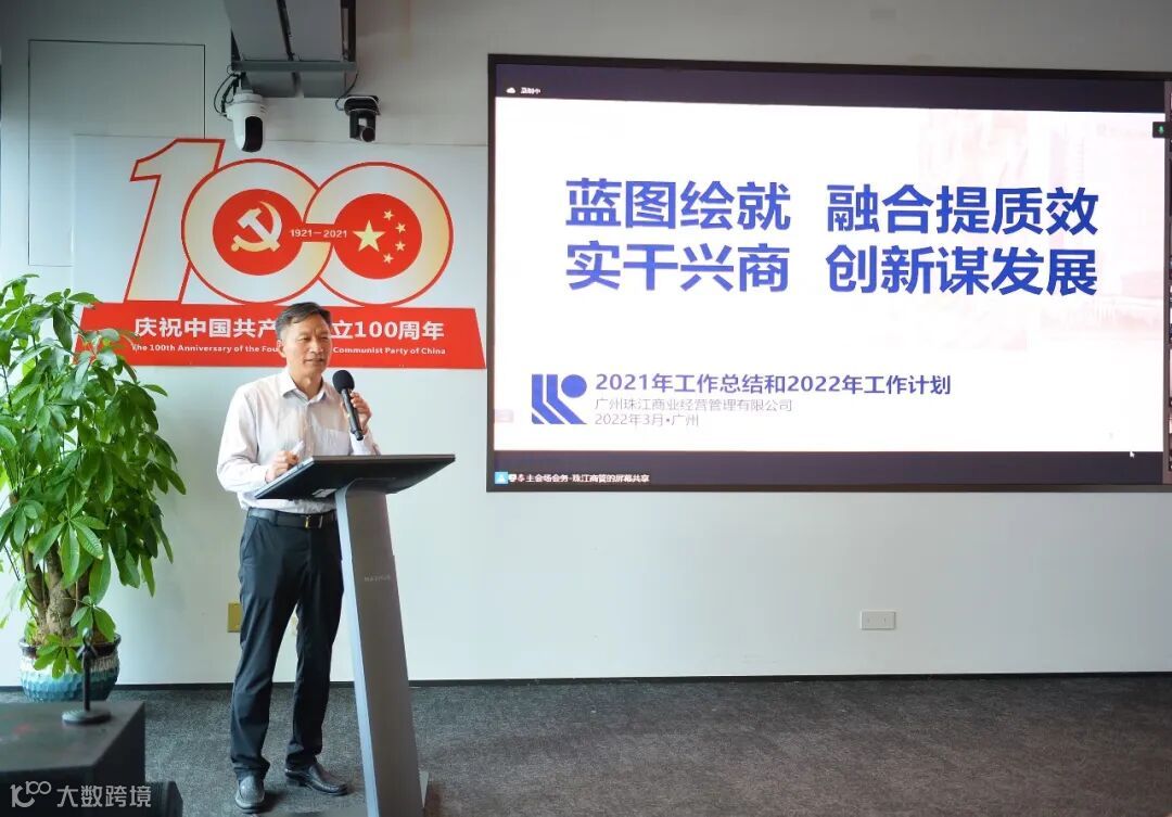 会上,珠江商管党总支委书记、董事长王友华做了题为“蓝图绘就,融合提质效;实干兴商,创新谋发展”2021年度工作报告。