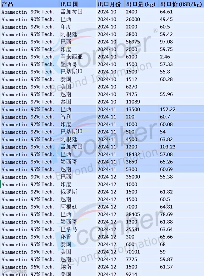 出口数据|24年末吡虫啉出口市场分析:量价平稳,区域集中度凸显