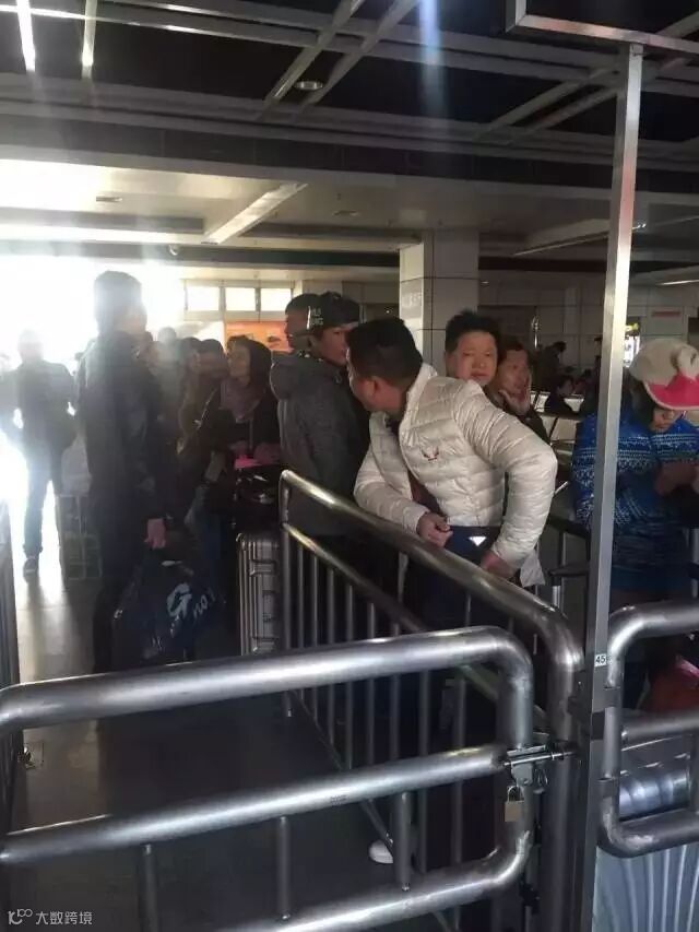 来到车站的老乡们按次序排队等候