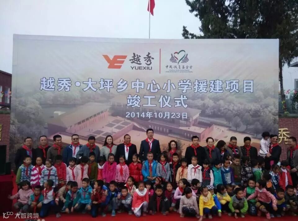 近年来,越秀地产向雅安灾区捐赠683万;向鲁甸灾区捐赠300万;2014年10月23日,由越秀地产援建的大坪乡中心小学正式竣工,成为雅安地震后,天全县第一所竣工的整校重建学校。