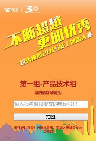 进入正确的组别后,输入报名时候提交的电话号码(核对后的队长电话),再点击“抽签”按钮,即可得知本队伍在海选当日本组的出场顺序。(一定要记住这个号码哦)
