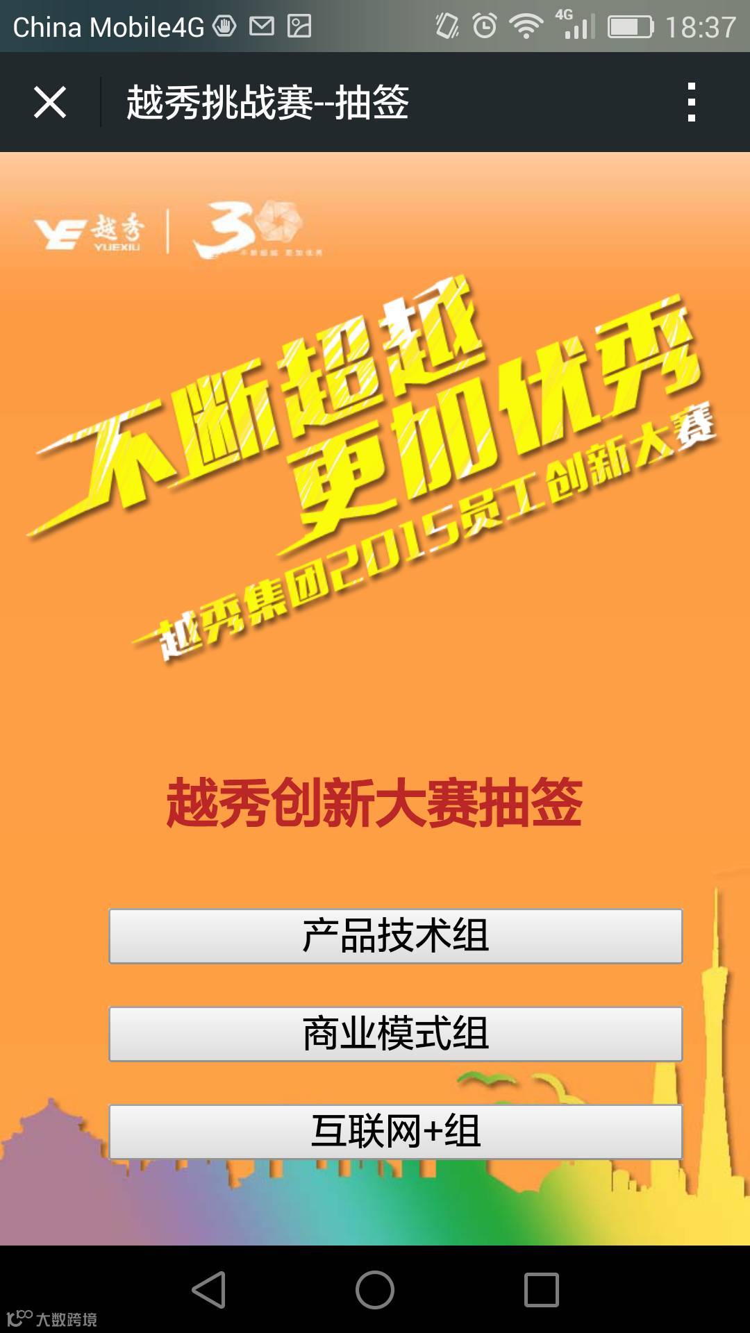 根据自己队伍所在的组别点击进入相应的组别抽签。(例:根据组委会分组安排,“追梦出彩队”为产品技术组,则点击进入“第一组产品技术组”参与抽签)