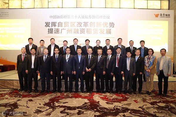 2015年4月9日,由中国融资租赁三十人论坛和广州越秀集团主办,广州越秀金控集团和越秀融资租赁承办的中国融资租赁三十人论坛专题高峰会议在广州国际金融中心隆重举行。本次论坛的主题为“发挥自贸区改革创新优势,提速广州融资租赁发展”,共吸引超过100位来自政府、监管部门、租赁行业的专家和租赁公司代表,共同为广州租赁行业的发展把脉,发掘自贸区给融资租赁业发展带来的新机遇。市委常委、南沙区委书记丁红都,副市长骆蔚峰等市领导出席了论坛;工银租赁、海航资本、海通恒信租赁和越秀融资租赁等国内租赁行业龙头企业的主要领导发表了主题演讲。
