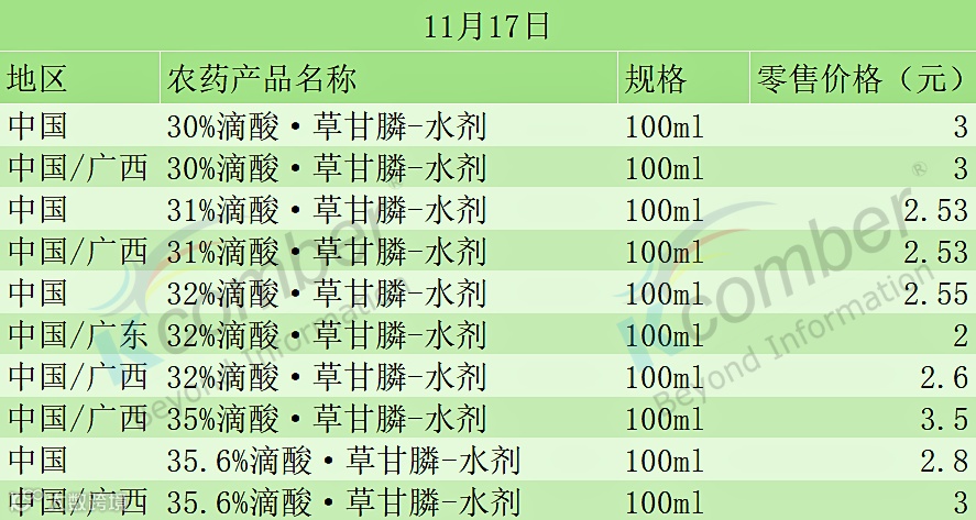 📅 11月17日 · 草甘膦系列价格快报