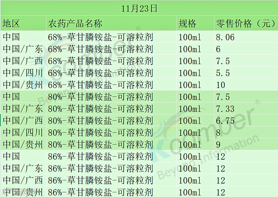 📅 11月23日 · 草甘膦铵盐系列价格快报