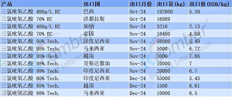 出口数据|Diquat敌草快2024年10-12月:核心出口国量价数据透视