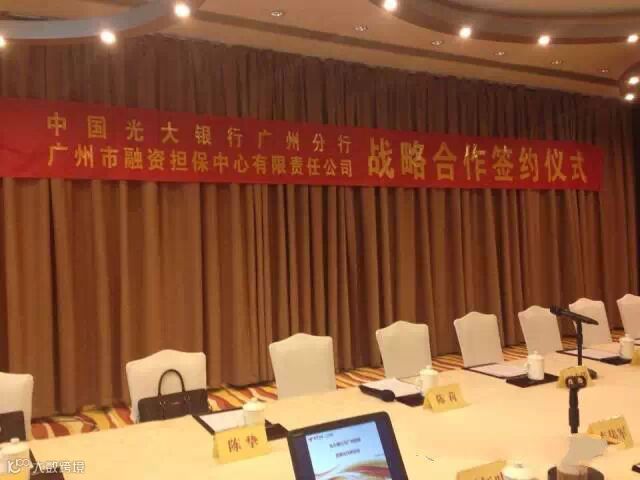 2014年12月17日,广州担保与光大银行广州分行在嘉逸国际酒店成功举行银担合作座谈会暨战略合作签约仪式。标志着广州担保与光大银行的合作正式开启!