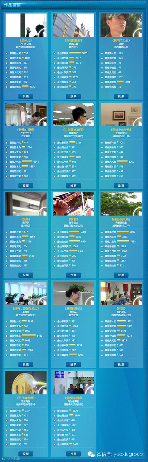越秀集团2014越秀杯微电影大赛网络投票即将截止!小伙伴儿们赶紧趁今晚冲刺啊!