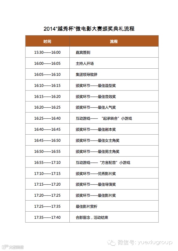 而2014"越秀杯"微电影大赛的重头戏颁奖仪式将于本周五下午在IFC11楼会议室进行,届时将会决出最佳影片及男女主角等重要奖项。