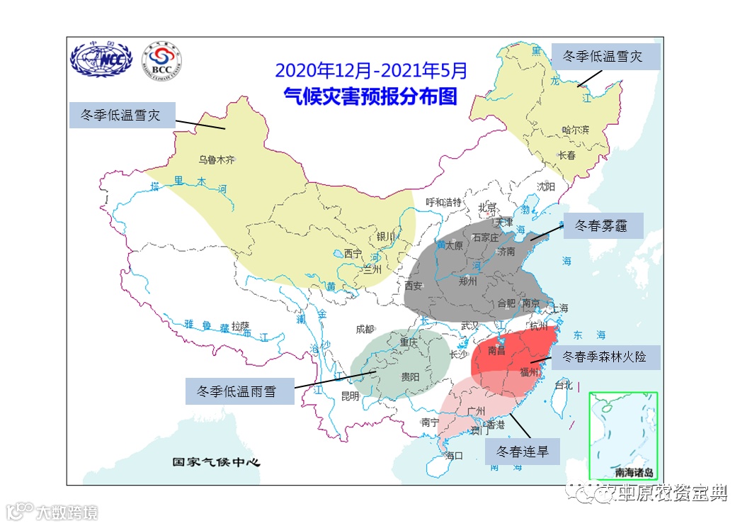 日前,国家气候中心联合水利部信息中心在北京组织召开了今冬明春(2020年12月至2021年5月)全国气候趋势预测联合会商会。在综合分析前期天气气候特征以及未来大气海洋等演变趋势基础上,对今冬明春气候趋势及主要气象灾害做出预测,主要结论如下:预计今年冬季(2020年12月至2021年2月)影响我国的冷空气活动频繁,势力偏强,主要以西北路径影响我国,全国大部气温接近常年同期到偏低,需特别重视隆冬(2021年1月)可能出现大范围强低温雨雪过程。