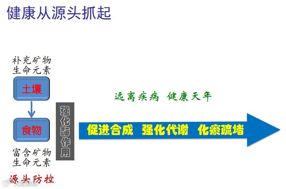 针对现阶段存在的问题,徐老师提出,人类把控好生命的源头,我们要补充土壤中的矿物生命元素,强化酶作用,促进合成、强化代谢、化淤疏堵,从源头抓起,解决困扰人类的健康问题。