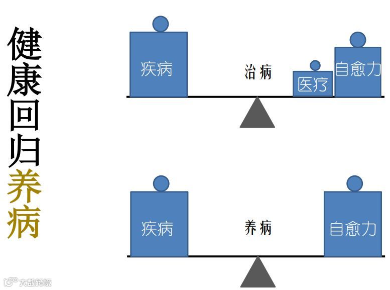 所以我们更应该注重的是健康保障,即不得病、自愈病、控制病应该是未来健康的主角,而不是靠医学让人们保持健康。深入的分析可得,我们要转变思想模式,即实现“治病”到“养病”的转变,提高身体的自愈力,这将有利于我们自身的健康发展。
