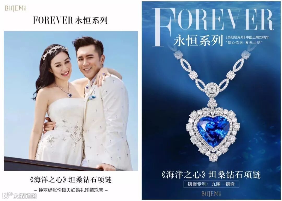 而贯穿电影的,还有一件名为“海洋之心”的美丽珠宝,,这条由坦桑石打造的项链,从头到尾见证了杰克和露丝的爱情。