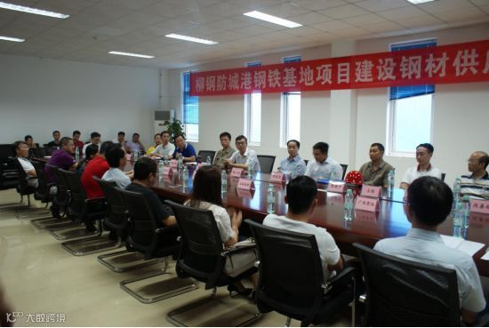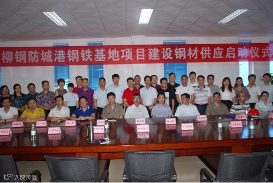 2018年8月30日,柳钢防城港钢铁基地项目建设钢材供应启动仪式在防城港市港口区企沙镇钢铁基地隆重举行。启动仪式由柳钢领导刘一声主持,总经理助理熊小明;股份公司副经理张卫权;防钢项目副总指挥、综合组组长李美亮;改善部副部长覃拥清;采购部副部长林承进;物资部副部长冯怀友;金材公司副经理辛劲及海宝集团在内的8家供应商代表共同出席本次仪式。