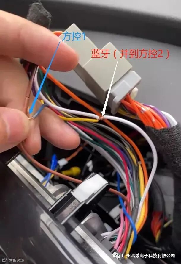 因为厂家就做了一个方控线,另一个方控线没有做出来。也没有链接到原车预留的方控1上,所以我们就把我们的线束上的方控1,方控2,方控地线,蓝牙线都重新对接上。(原厂屏的话是有对应的蓝牙线针位,安卓大屏的话一般都没有单独的蓝牙线,我们就需要把蓝牙线一起接到方控1或方控2那里就行)