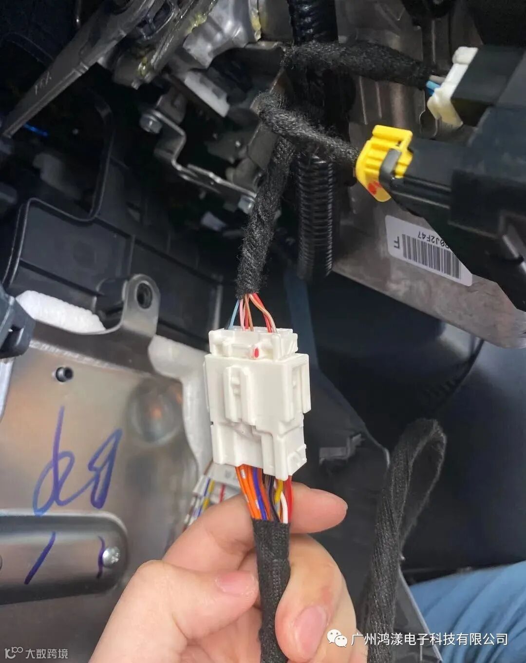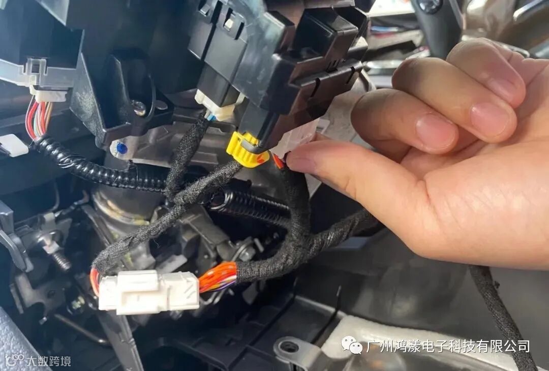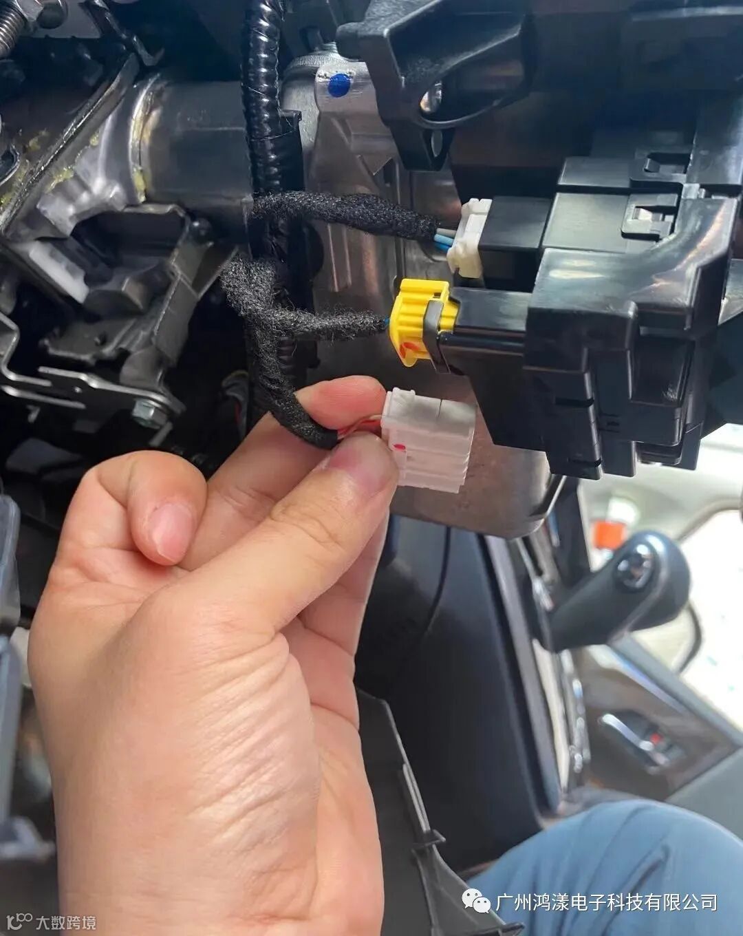 第5步:拆下原来方向盘上的线束,更换上高配线束(两边认准插,不要插反)再把多功能按键装好上去