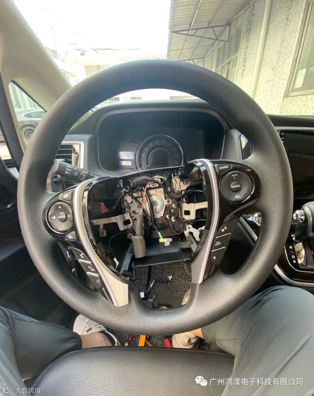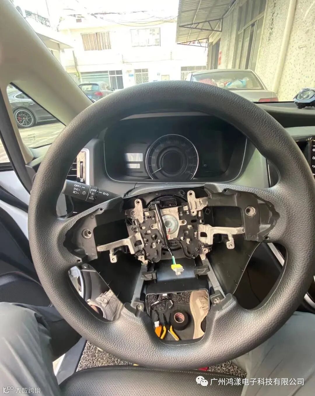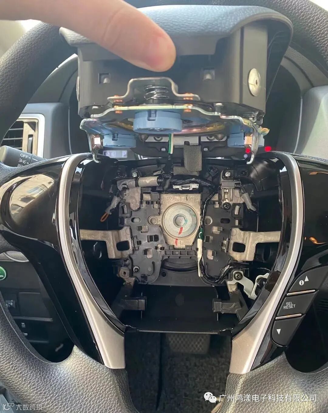 第5步:拆下原来方向盘上的线束,更换上高配线束(两边认准插,不要插反)再把多功能按键装好上去