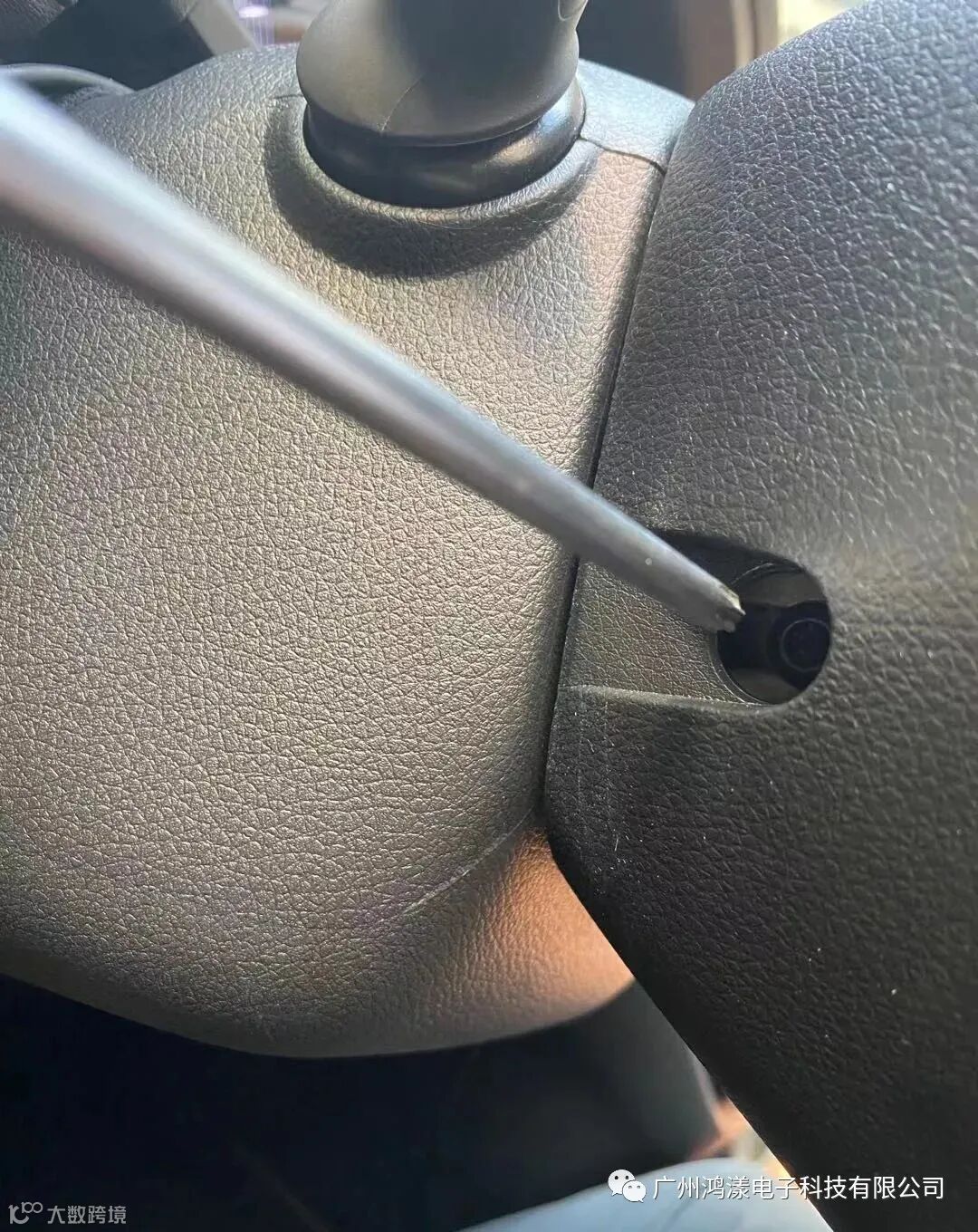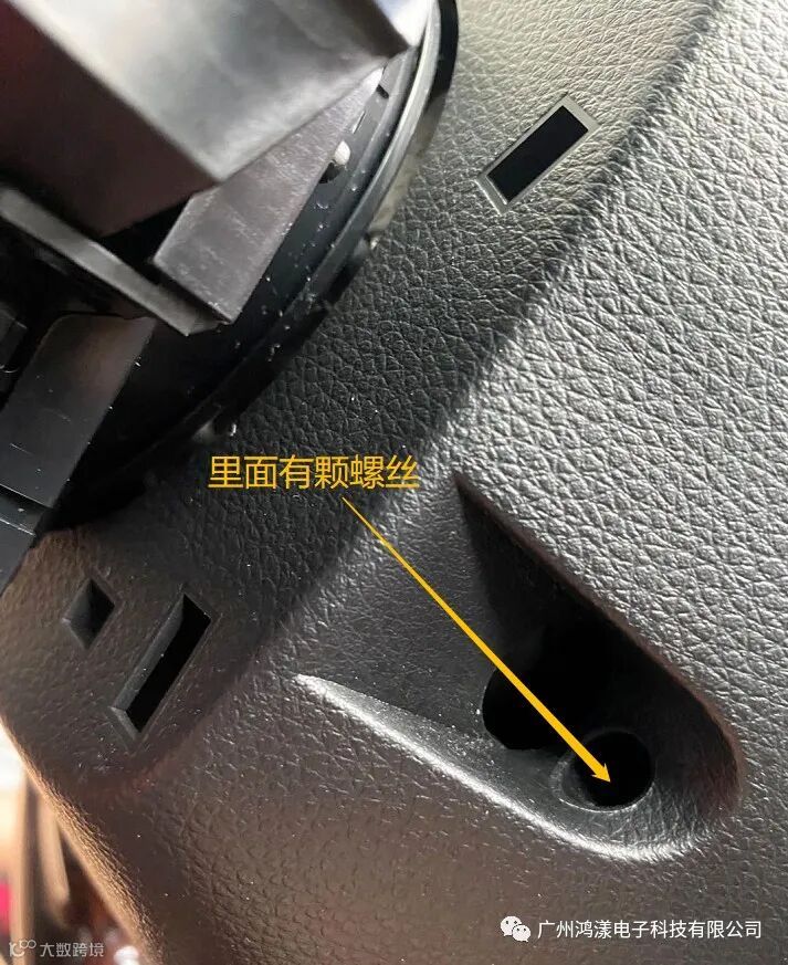第4步:拆下方向盘两边的按键面板(按键面板背部有2个螺丝,对着下图的孔位用螺丝刀拧下来)