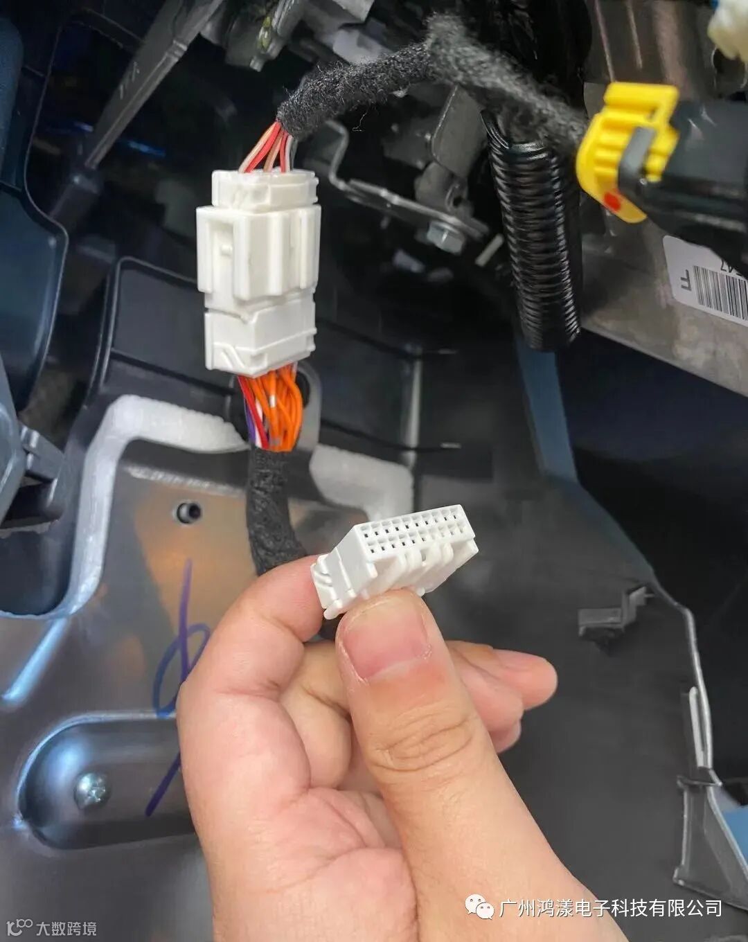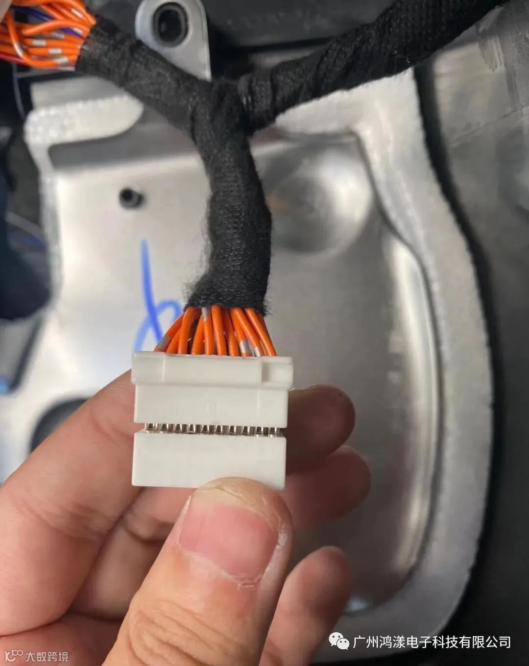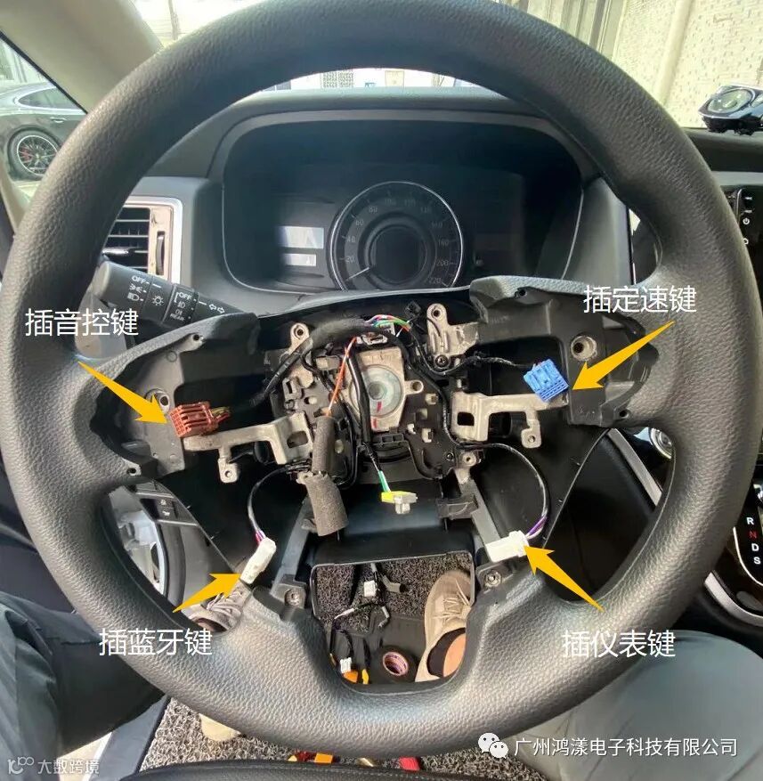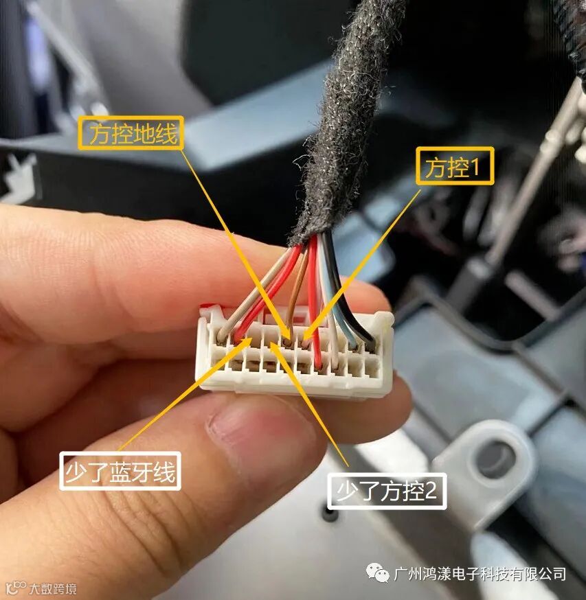 (方控1,小灯地线,方控地线,小灯线都有,就是缺了蓝牙线,方控2,和定速巡航的两条信号线。)这个专用转接插头就是已经把缺少的线做上去了的,直接对插就好。