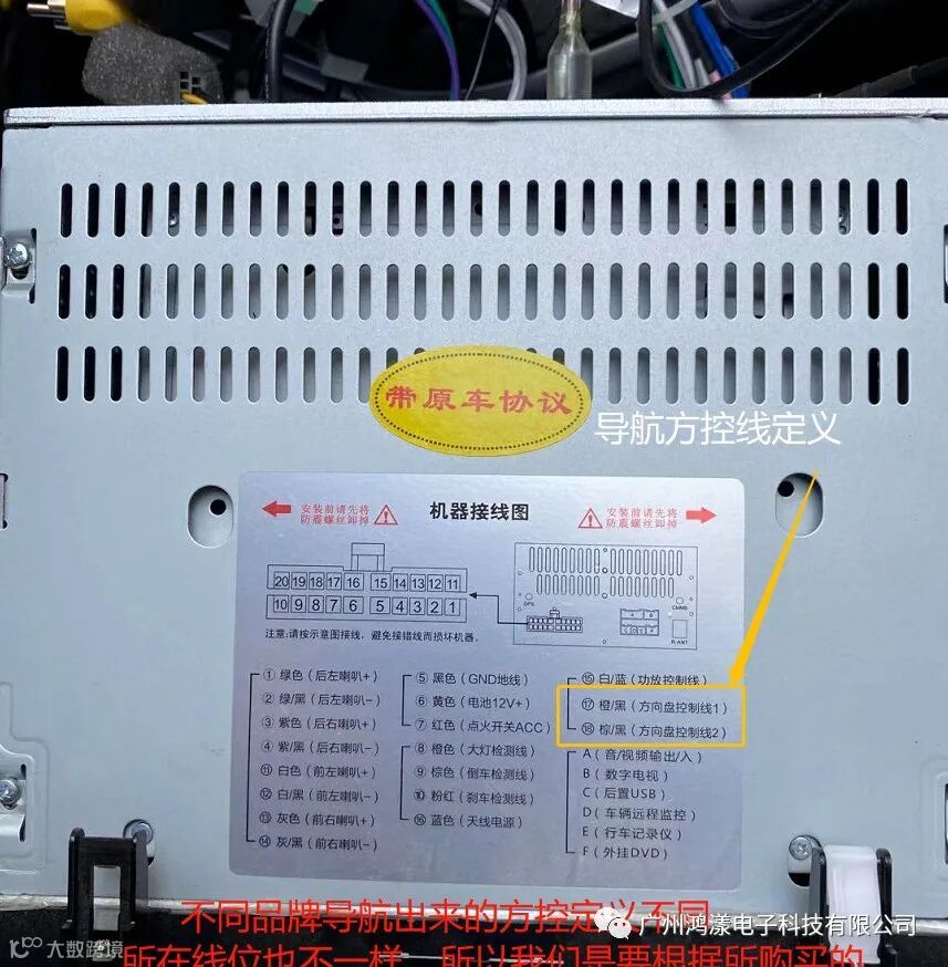 通常主机屏的卖家家都会给出他们的尾针定义。(每个不同厂家使用的定义不一样所以会出现方控线的针位不同)一般会用标签标记好(方向盘控制1或者叫KEY1)