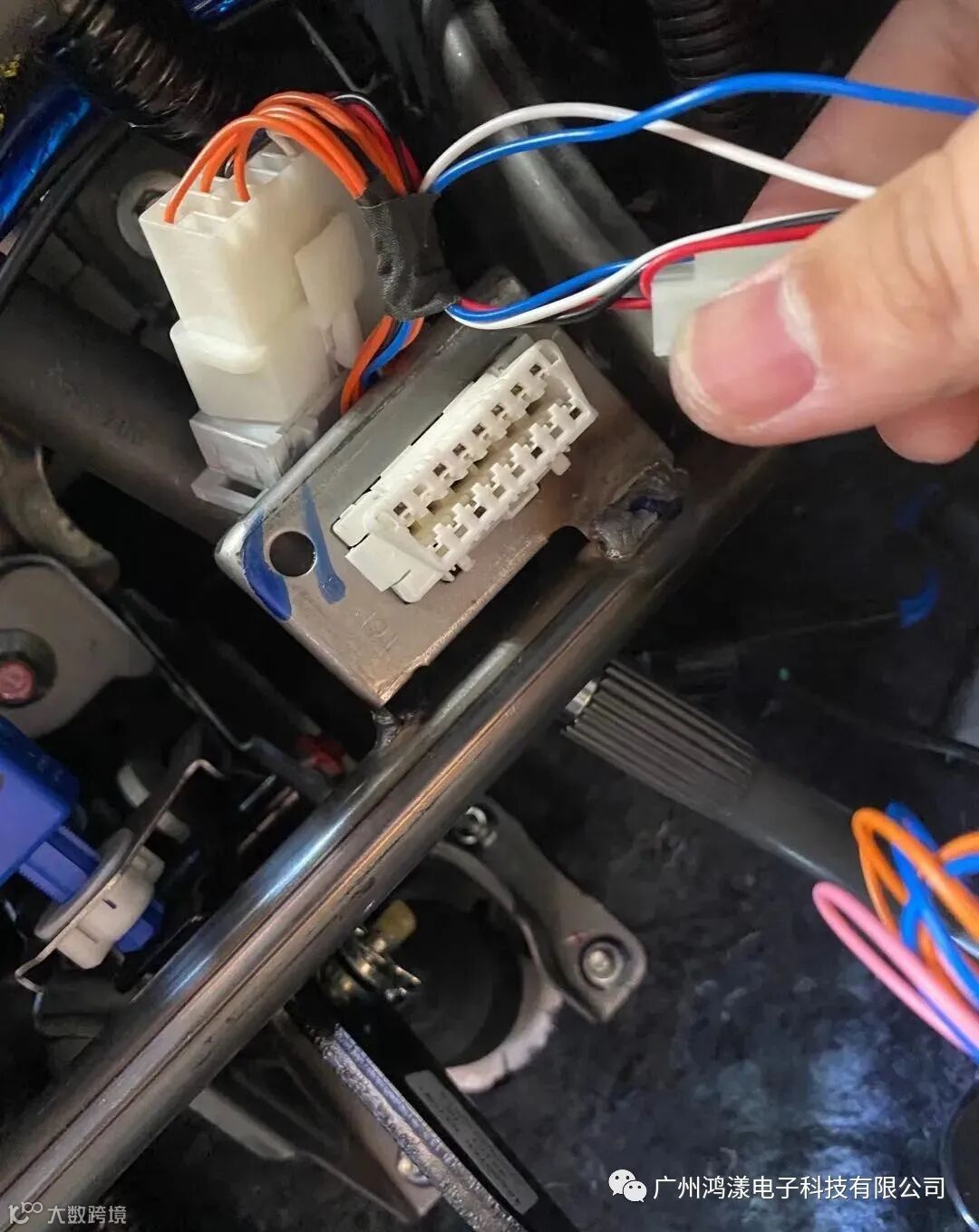拿下原车的油门踏板的插头,装上转插模块的插头.