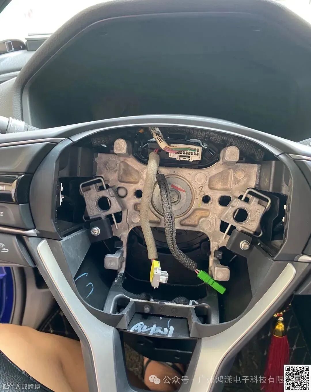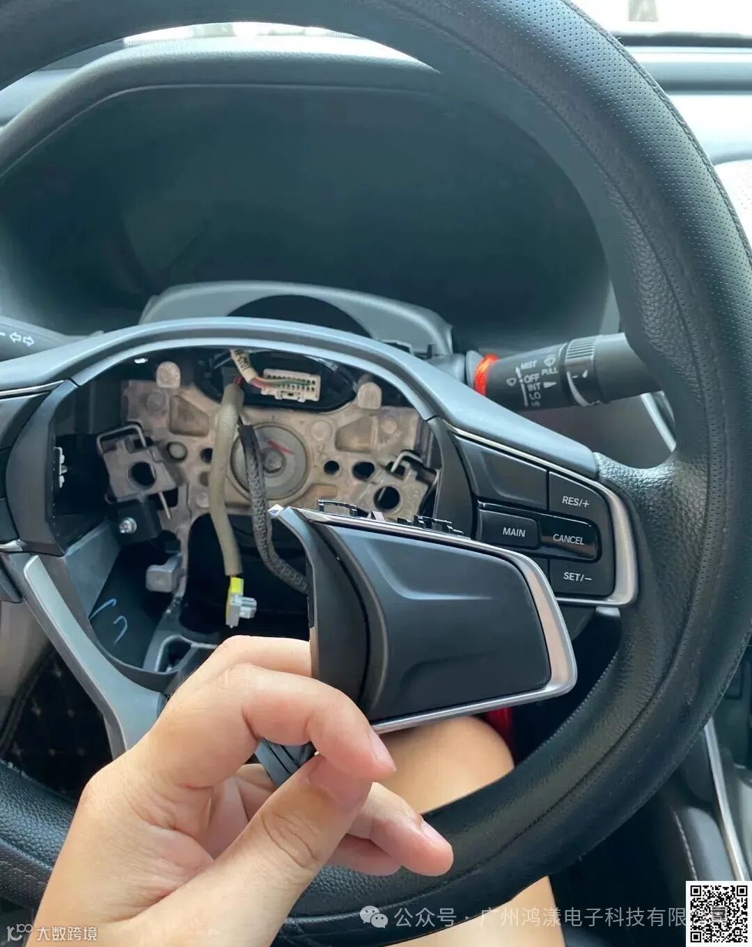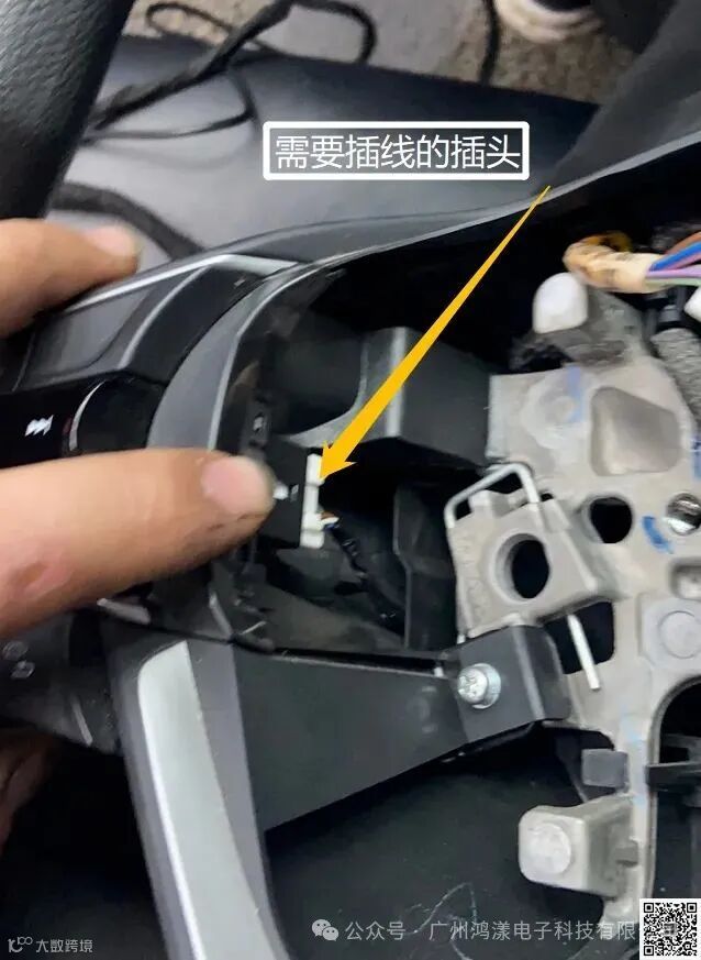 把原车的线束更换为高配线束(注意:两端插头一样的,线多的是左边音频按键的,线少的是右边定速按键的。不要插反!)并把右边按键装上。