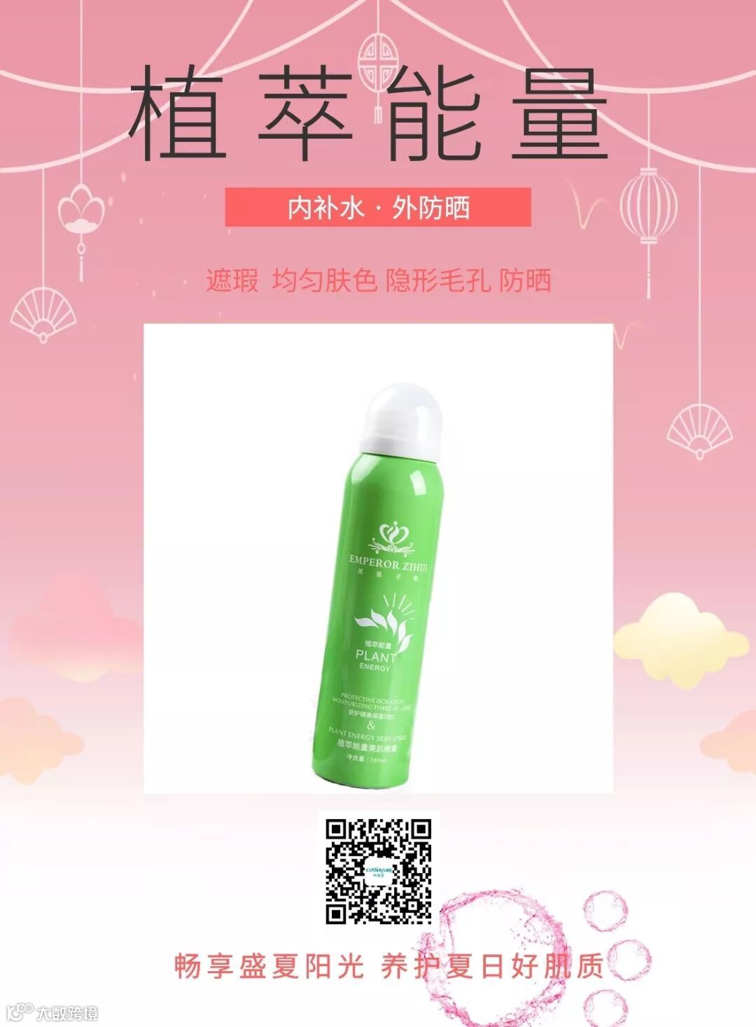 防晒的工作其实不仅仅是抵抗外界的紫外线,还有外界的灰尘细菌等等,更重要的是可以锁住水分,防止水分的流失,所以一款好的喷雾,是可以做到补水、锁水、隔离、防晒的,芊漾美植萃能量美肌喷雾就是这么一款!