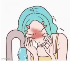 感觉脸上油腻腻的,然后就用热水洗脸;