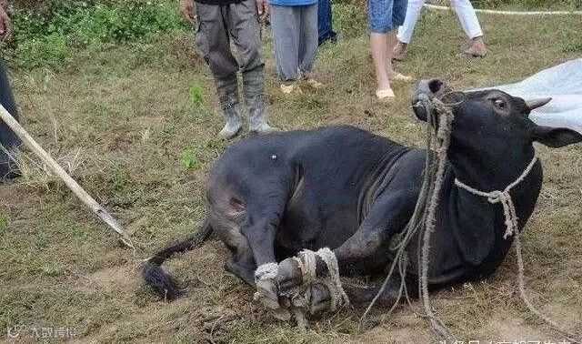 为了给女主人看病欠了很多钱,没办法男主人把大黄牛卖给了屠宰场宰了。