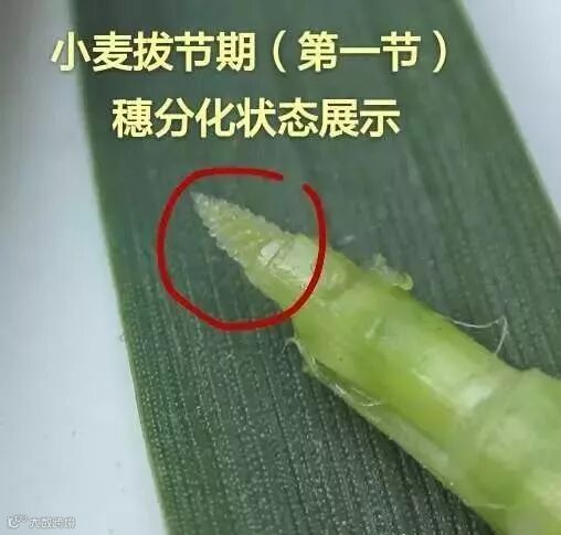 小麦在全田有50%以上的植株第一伸长节间露出地面1.5-2厘米,幼穗分化进入药隔期,即为拔节期。根据当年气温与栽培管理的不同,我地小麦一般3月下旬陆续进入拔节期。