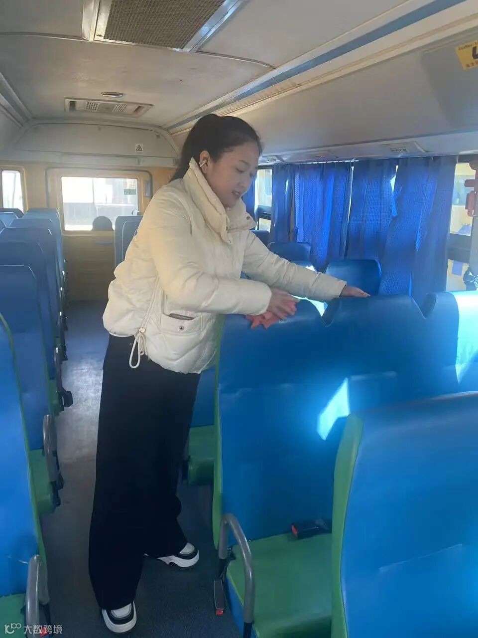 周莹深知,校车照管不仅是安全守护,更是温情陪伴。她把每一位学生都当作自己的孩子,用耐心与爱心化解成长烦恼。针对性格内向、行动不便的学生,她主动靠前帮扶,每天上下车细心搀扶、耐心交流,用真诚关怀打开孩子心扉;遇到学生突发身体不适,她总能第一时间拿出常备药品安抚照料,及时联系家长与学校,全程陪伴守护直至交接妥当。还记得一个傍晚,四年级的一名学生耷拉着脑袋坐在座位上默默抹泪,周莹察觉后轻声询问,才知道孩子因数学考试失利而沮丧。她没有急着说教,而是坐在他的身边,翻看试卷帮他分析错题原因,还分享自己小时候的“失利小故事”,告诉孩子一次考不好不代表能力不行,重要的是找到问题、下次改进。一路的温柔开导,让孩子渐渐收起了眼泪,露出了释然的笑容。为让乘车时光更有意义,她创新打造 “流动课堂”,在车厢内设置图书角、开展安全知识问答、节日互动等活动,让十米车厢成为传递知识与温暖的第二课堂。