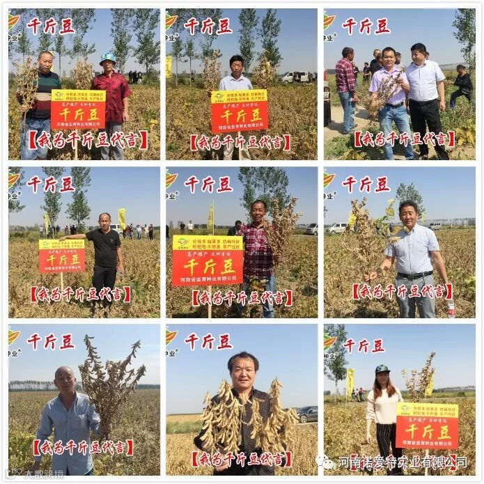 2018年10月2日,河南省坔育种业有限公司举办的千斤豆大豆观摩会在漯河市舞阳县举行,时值国庆假期期间,全省各地的优秀经销商放下手中繁忙的事务,怀着一颗为农民服务的真心,秉着一个选取良好品种的信心,亲临现场,观看了豆种田间表现,见证了千斤豆的实力,纷纷取样品,拍照留念,为千斤豆代言!