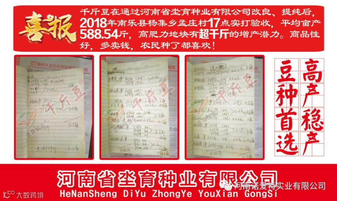 千斤豆在民权、舞钢、舞阳、延津、濮阳、周口、菏泽等多区域两年试验,品质过硬,稳产、高产。