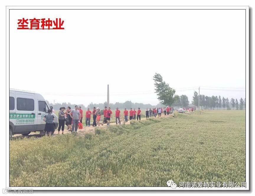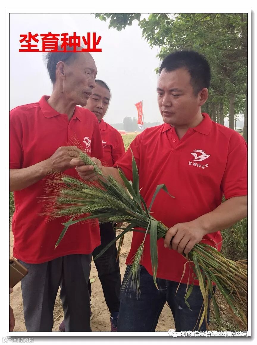 坔育种业公司秉承为农民服务,为客户服务的原则,严把质量关,科学管理,精心培育筛选小麦品种,2017年定点商丘民权,安阳滑县,新乡延津,平顶山舞钢四个示范基地,示范田共计5000亩,各基地小麦长势喜人,尤其在今年各种小麦冻害、赤霉病高发时期表现卓著,无冻害、无病害、长势喜人,给各位经理交上了一份满意的答卷,田间丰收的喜悦气息迎面而来。
