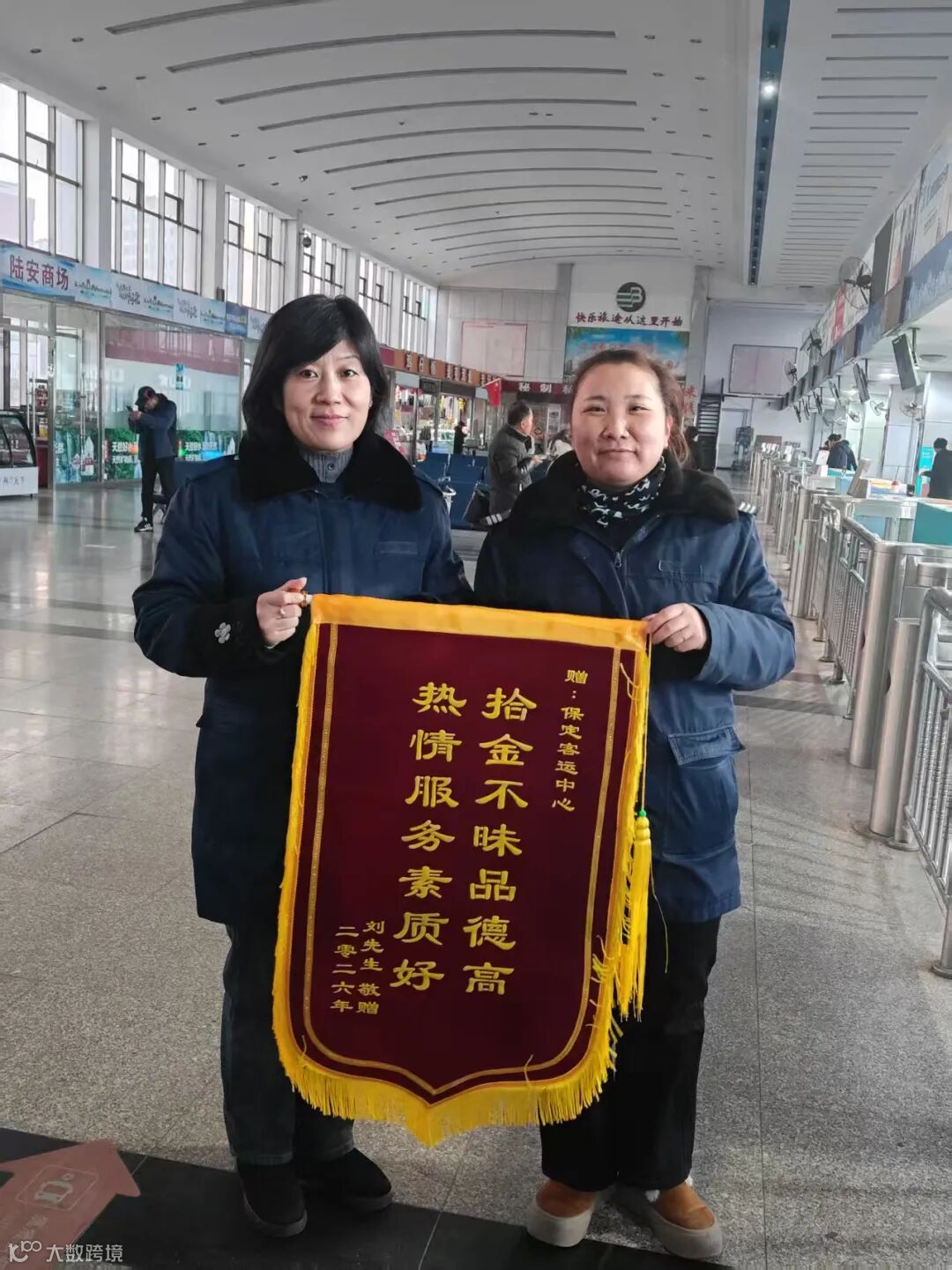 面对财物,两位站务员恪守职业操守,处置过程规范、迅速、周到,最终使行李完好无损地“踏上”了与主人团聚的旅程。这份超越岗位要求的用心,深深打动了旅客。就在近日,一面满载谢意的锦旗寄抵总站,为这个始于春运前夕的暖心故事,写下了温暖的后续。