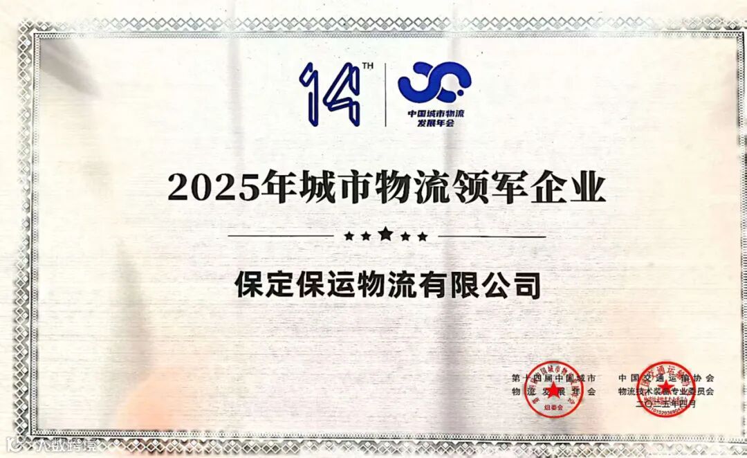 近日,保运物流公司凭借其在城市物流领域的卓越贡献与创新成果,荣获中国交通运输协会颁发的“2025年城市物流领军企业”称号。