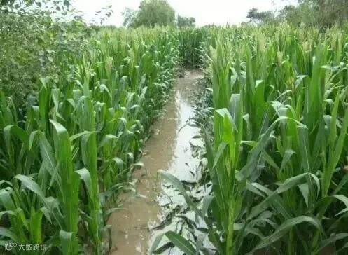 强降雨后,如果玉米地有积水,应该尽快想办法排出,降低田间湿度, 并及时进行追肥。强降水和洪涝过后,土壤肥力被被雨水带走,追肥可以促使植株恢复生长。可选用尿素0.5%和磷酸二氢钾0.2%,在完全溶解混匀之后,利用雨后放晴天,进行叶面喷洒追肥,需连续喷洒2次,中间每次间隔7天。