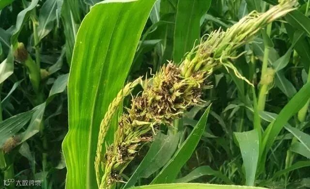穗期的虫害主要有玉米螟等。玉米螟在穗期阶段主要在心叶(喇叭口内)当中蛀食叶片,抽雄至吐丝阶段蛀食雌穗,在玉米开始结实以后则钻蛀秸秆和穗轴、穗柄。因此,防治玉米螟的最佳时期为大喇叭口期,抽雄以后再进行防治则会非常困难。玉米螟防治方法是在大喇叭口灌心,可采用福奇或度锐或佳腾等喷雾防治玉米螟。夏玉米穗期的主要病害有褐斑病、茎腐病等。褐斑病可在玉米6~8片叶时选用18.7%扬彩加入磷酸二氢钾等叶面肥喷雾防治,注意喷顶盖心和叶片均匀喷施;茎腐病可在发病初期用77%可杀得可湿性粉剂600倍液喷雾。
