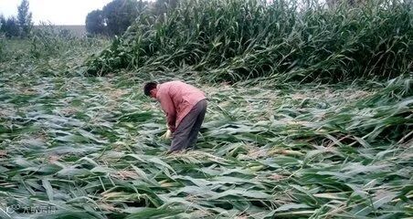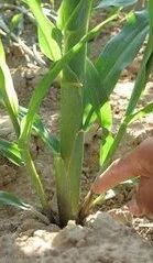 3、如果是从根部倒伏,最好采用人工扶立,扶的时候可用细绳或直接用玉米叶将至少三棵玉米绑在一起,防止二次倒伏。注意在玉米能自己站立后要将绑的在一起的玉米松开,因为绑在一起影响玉米授粉。最好不要用脚踩根部,这样容易伤根。这个时期如果不扶,玉米亦可从果穗部位直立,会有一定产量,只是玉米呈一弯形,不利玉米后期管理和收获。
