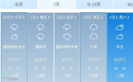 8月4日:阴天有阵雨、雷阵雨 25℃~31℃