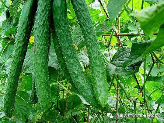 2.巧施坐果肥 黄瓜为无限花序,结果期较长,约两个多月。要求每结一批瓜后需要补充一次水肥。要灌浑水(即将肥料溶于水中,随水施入)与灌清水相结合,以防止肥劲过猛,保证黄瓜丰产。