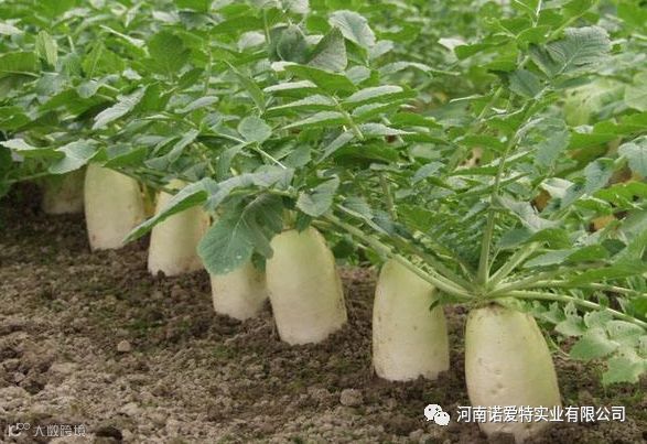每生产1 000千克萝卜,需从土壤中吸收N2.1~3.1千克、P2O50.8~1.9千克、K2O3.8~5.6千克。三者比例为1:0.2:1.8。可见萝卜是喜钾的蔬菜,而不应过多施用氮肥。另外,萝卜对硼素比较敏感,在肉质根膨大前期和盛期采用叶面喷施硼肥,可有效提高萝卜的品质。