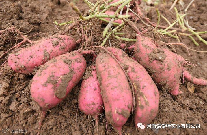 甘薯以地下块根为经济产品,据研究每产1000kg鲜薯,需氮(N)4.9~5.0kz、磷(P205)1.3—2.Okg、钾(K20)10.5—12.0kg。氮、磷、钾之比约为1:0.3:2.1。甘薯一生对氮、磷、钾三要素的需求,以钾最多,氮次之,磷较少,从土壤中吸收水分、养分趋势亦大体相同。在甘薯整个生育过程中的不同生长阶段吸收氮、磷、钾的数量和速率有显著的差异。对氮素的吸收于生长的前、中期速度快,需量大,主要用于茎叶生长,茎叶生产盛期对氮素的吸收利用达到高峰,后期茎叶衰退,薯块迅速膨大,对氮素吸收速度变慢,需量减少;对磷素的吸收利用,随着茎叶的生长,吸收量逐渐增大,到薯块膨大期吸收利用量达到高峰;对钾素的吸收利用,从开始生长到收获较氮、磷都高。随着叶蔓的生长,吸收钾量逐渐增大,地上部从盛长逐渐转向缓慢,其叶面积系数开始下降,茎叶重逐渐降低,薯块快速膨大期特别需要吸收大量的钾素,甘薯需要氮、磷、钾三要素的总的趋势是前、中期吸收迅速,后期缓慢。甘薯一生对必需的微量元素的吸收量虽然很小,但若土壤缺乏,正常生长也会受到严重的影响。土壤有效锌含量在0.5mg/kg以下,甘薯叶色淡、叶片小,分枝少,抗旱能力降低等;或叶片镁含量低于0.05%时,即出现小叶向上翻卷,老叶叶脉间变黄等缺镁症。因此,生产上还必须密切重视土壤中微量元素的含量变化动态,倘若缺乏,需及时补充。