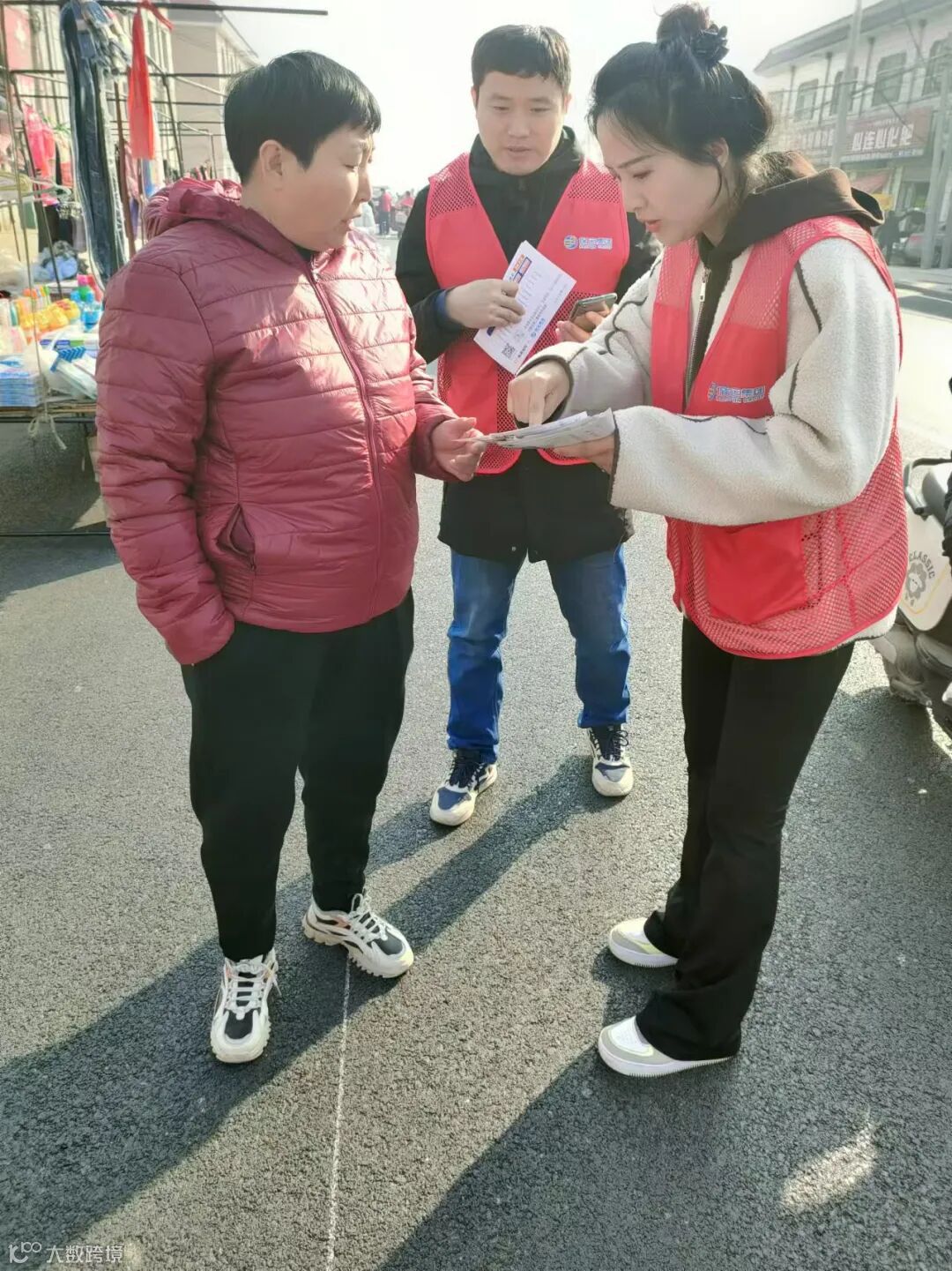 2月28日一早,五公司后勤人员身穿红马甲,深入到658留史班线途经的百尺镇,利用“乡村赶大集”的时机,向过往乡亲居民发放宣传单,详细介绍658留史线路的停靠站点、发车时间、票价优惠等具体信息。