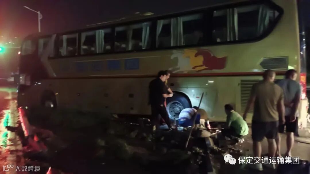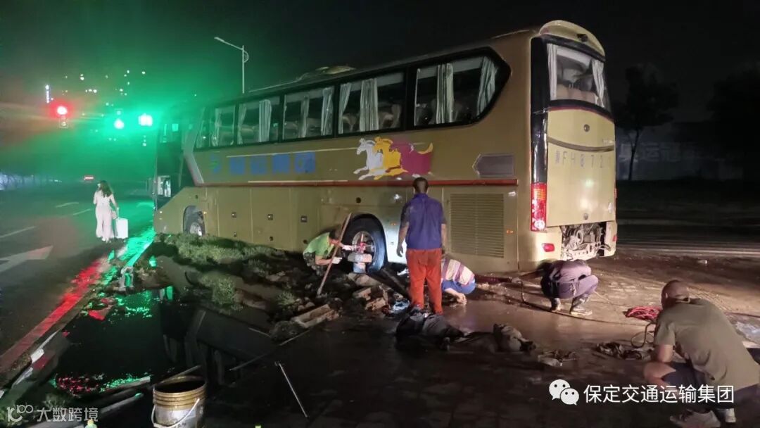 7月30日至8月1日,受台风“杜苏芮”的影响,河北省迎来强降雨天气,保定东站发生严重积水,按照市委市政府及集团公司防汛救灾工作部署,一公司连夜调配应急车辆和驾驶员前往保定东站护送滞留旅客。7月31日暴雨持续,保定东站水位上涨到80公分左右,正在执行任务的冀FH8721号车车轮陷进路边花池导致悬空无法移动,驾驶员经过多次自救无果后,只能将车辆原地停放等待救援。接到救援信息后,一公司领导迅速组织相关部门,成立救援领导小组,全力救援被困车辆。雨势渐小后,旅游综合车队队长窦伟带领驾驶员魏洪涛、刘贵强和修工一行人赶赴现场抢修,由于之前积水严重,给救援工作带来了很多困难,钢丝绳拽断、轮胎打滑、车辆越陷越深,凌晨两点,救援小组申请调来了另外一部大巴,两辆救援车一起拖拽起被困车辆,直至凌晨五点左右,才成功将车辆拖出安全送回家。
