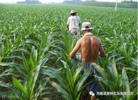 保持土壤水分充足,是促进玉米植株良好生长和雄穗的正常分化的关键。玉米大喇叭口期要有充足的水分,要保持田地表常湿不干,以此满足玉米在拔节期的需要,田间持水量保持在70%左右。