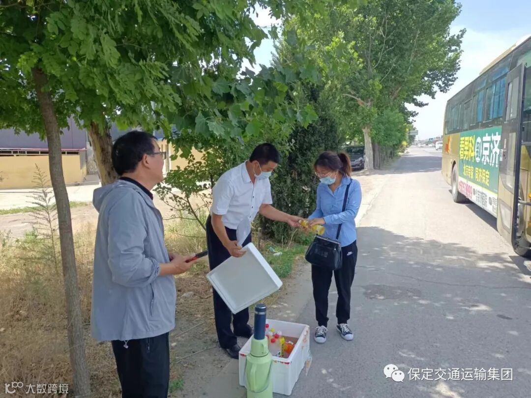 6月25日室外气温已达到41℃,是今年入夏以来最热的一天。三公司经理王德兴亲自带队,带领办公室、客车队深入一线,在王京路段为631司乘人员送去防暑降温药及冰镇饮料。王经理对奋战在一线的司乘人员送去关怀和问候,感谢他们烈日下的坚守,并针对高温天气是安全事故易发、多发季节特点,叮嘱司乘人员绷紧安全弦,遵守交通规则,做到安全行车,不出事故。